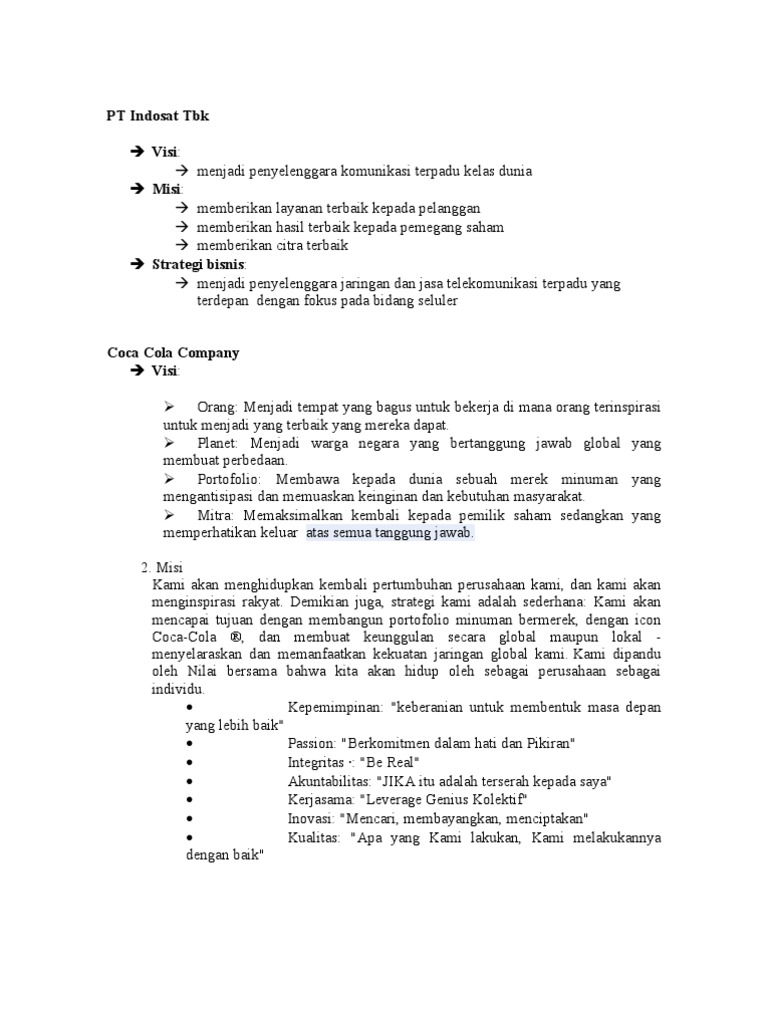 Contoh Beberapa Visi Dan Misi Perusahaan