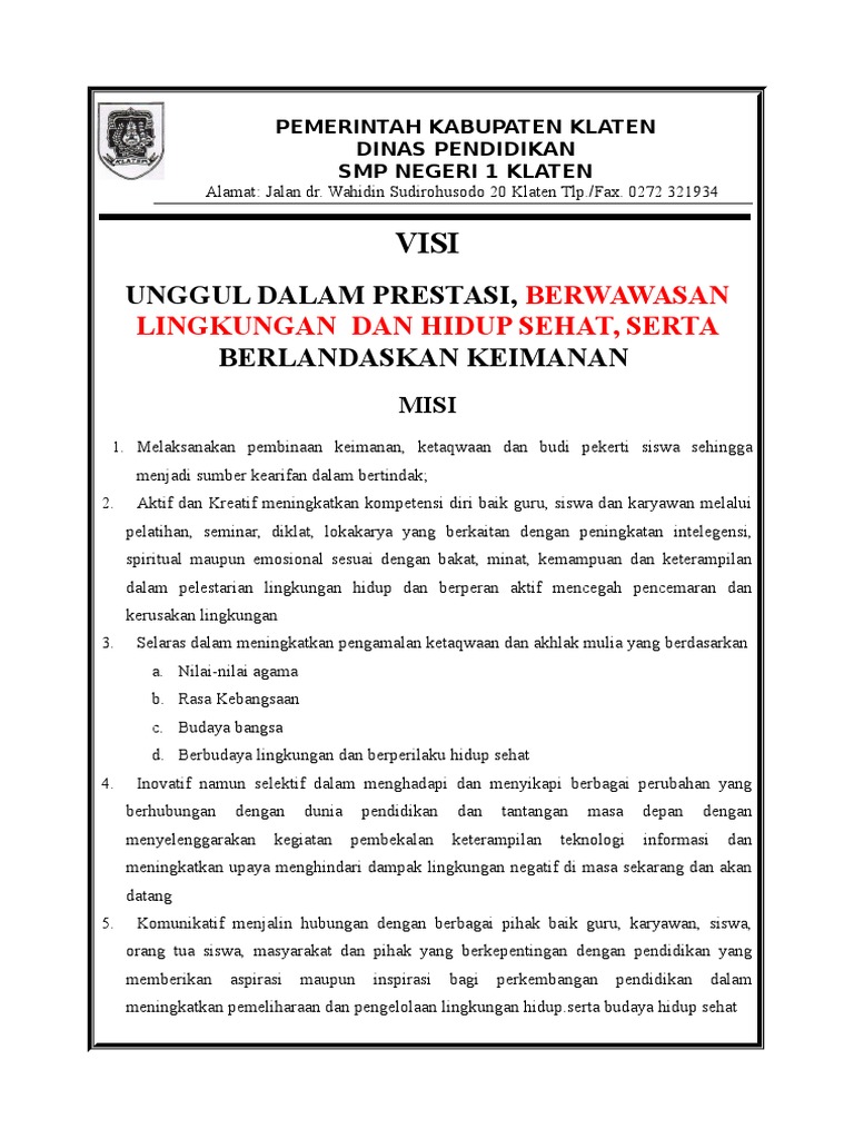 Contoh Sk Visi Misi Sekolah Doc Guru Ilmu Sosial