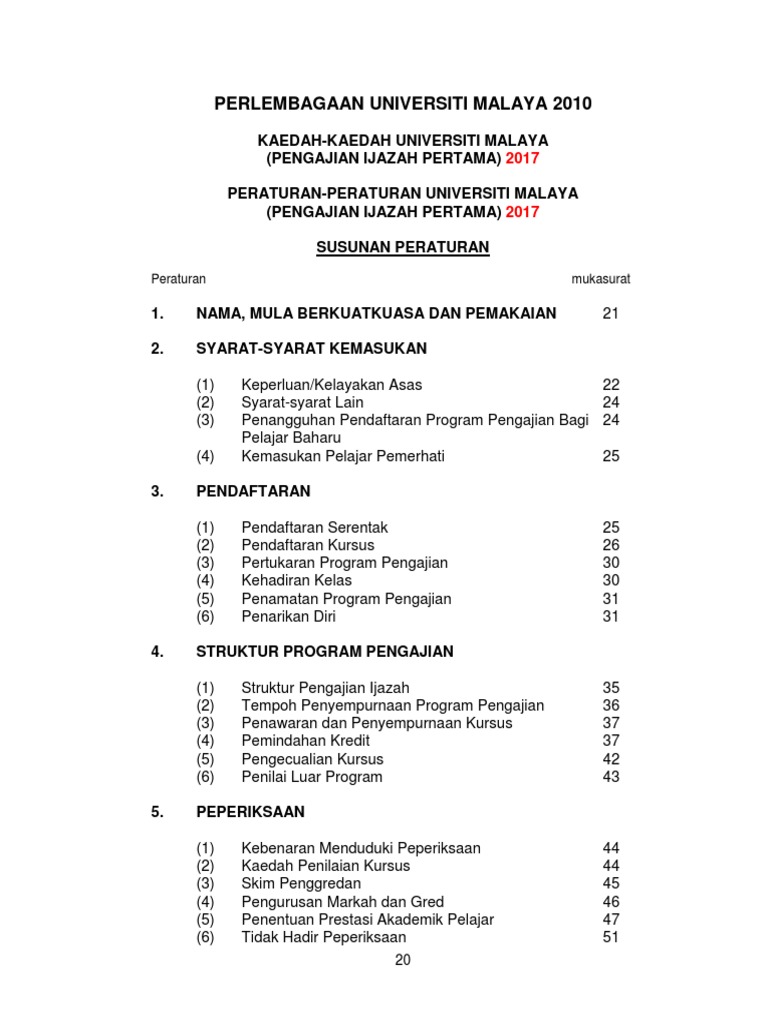 Peraturan Peraturan Universiti Malaya Pengajian Ijazah Pertama Pdf Document
