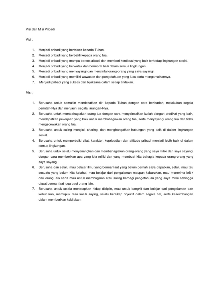 Doc Contoh Visi Misi Pribadi 10 Tahun Kedepan Lesly Chntyia Academia Edu