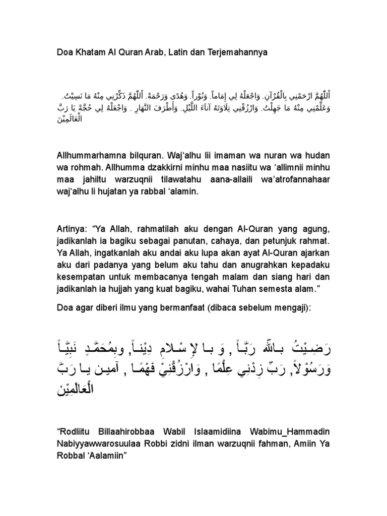 Doa Khatam Qur An Arab Latin Dan Terjemahan Bangkitmimpi Com