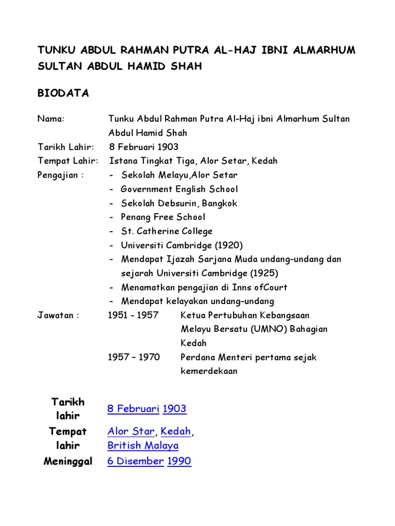 Contoh Folio Tunku Abdul Rahman Contoh Oct