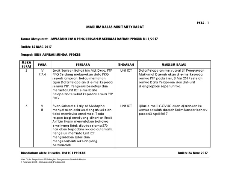Pk07 3 Borang Maklum Balas Minit Mesyuarat Bil1 2020 Edited Pages 1 5 Text Version Anyflip