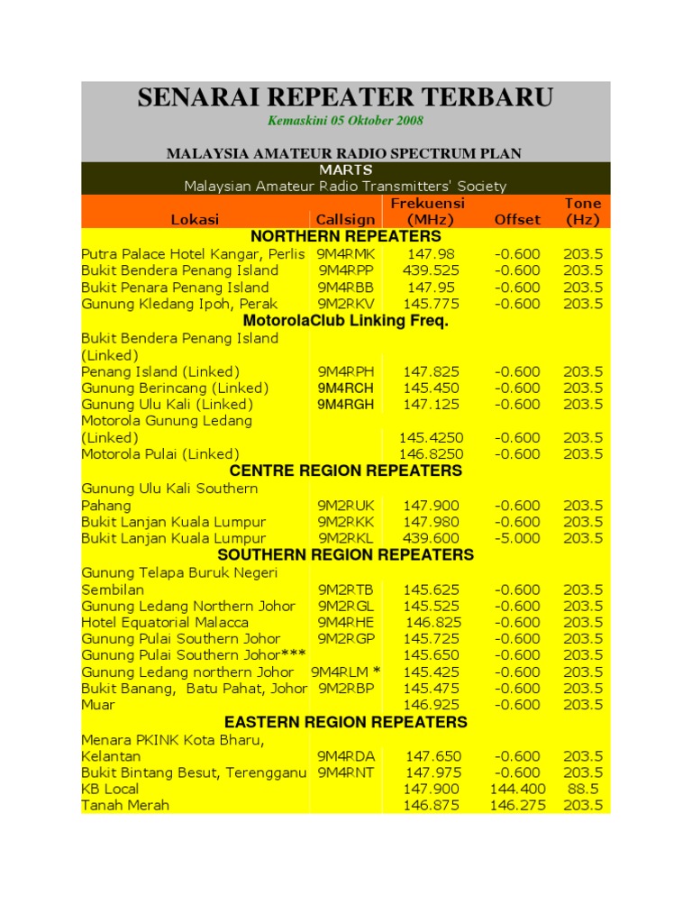Kelab Komunikasi Radio Amatur Bachok Kelantan Akrab Senarai Repeter