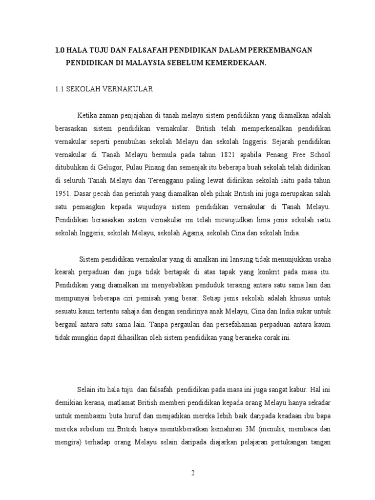 Hala Tuju Dan Falsafah Pendidikan Dalam An Pendidikan Di Malaysia Sebelum Kemerdekaa1