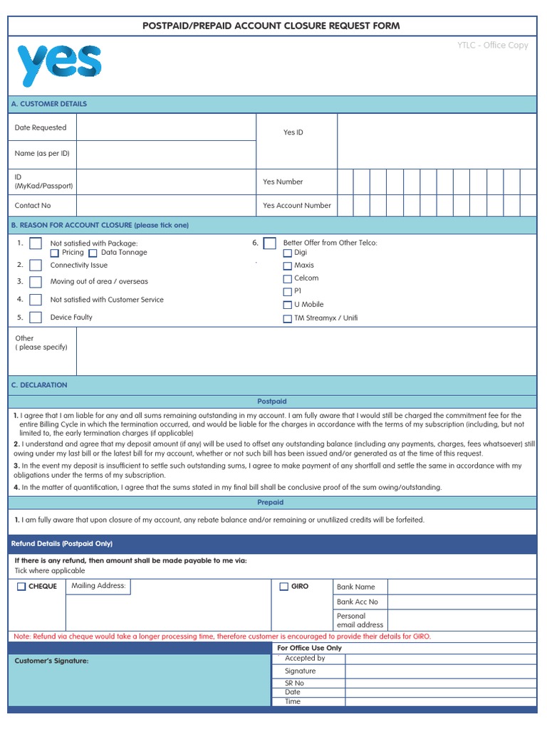 Yes 4g Termination Form