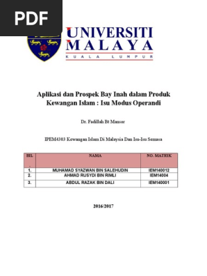 Aplikasi Dan Prospek Bay Inah Dalam Produk Kewangan Islam