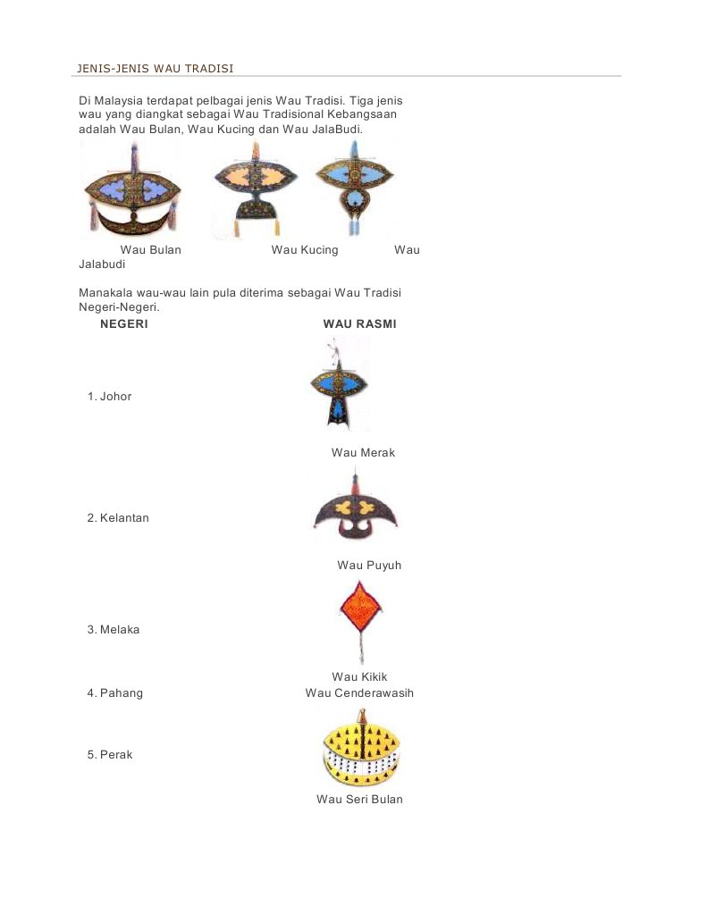 Jenis Jenis Wau Jenis Wau Yang Terdapat Di Malysia