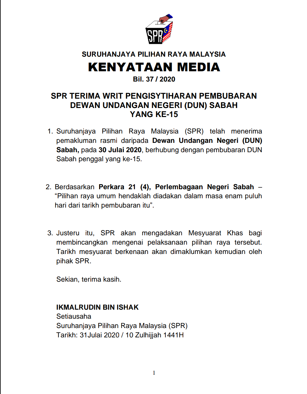 Bernama On Twitter Spr Terima Notis Pembubaran Dun Sabah Https T Co Lyvoyhhjul