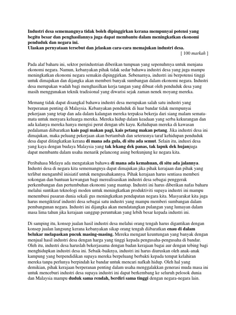 Usaha Usaha Memajukan Industri Desa Contoh Karangan Usaha Usaha Memajukan Industri Desa Pada Masa Ini Industri Desa Semakin Berkembang Di Negara Kita Course Hero