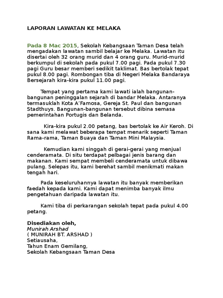 Laporan Lawatan Ke Melaka