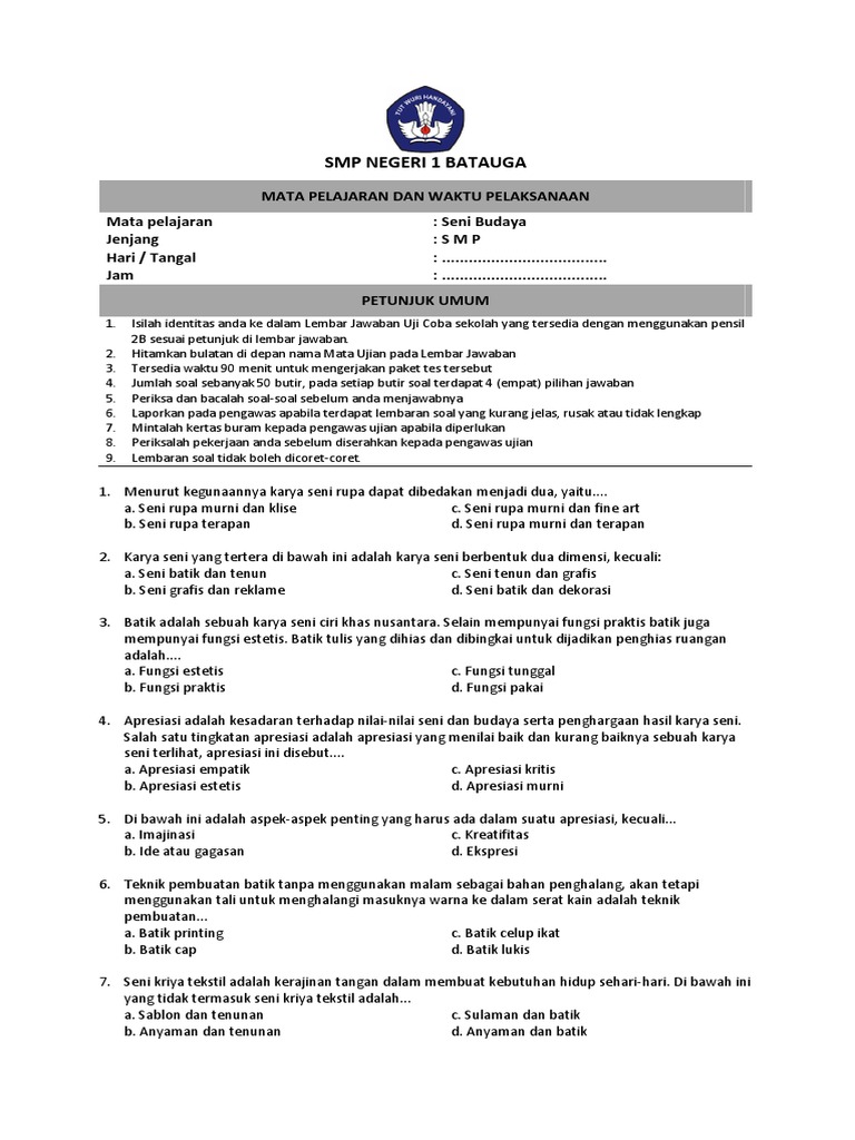 Soal Dan Kunci Jawaban Pat Seni Budaya Smp Kelas 8 Kurikulum 2013 Tahun Pelajaran 2018 2019 Didno76 Com