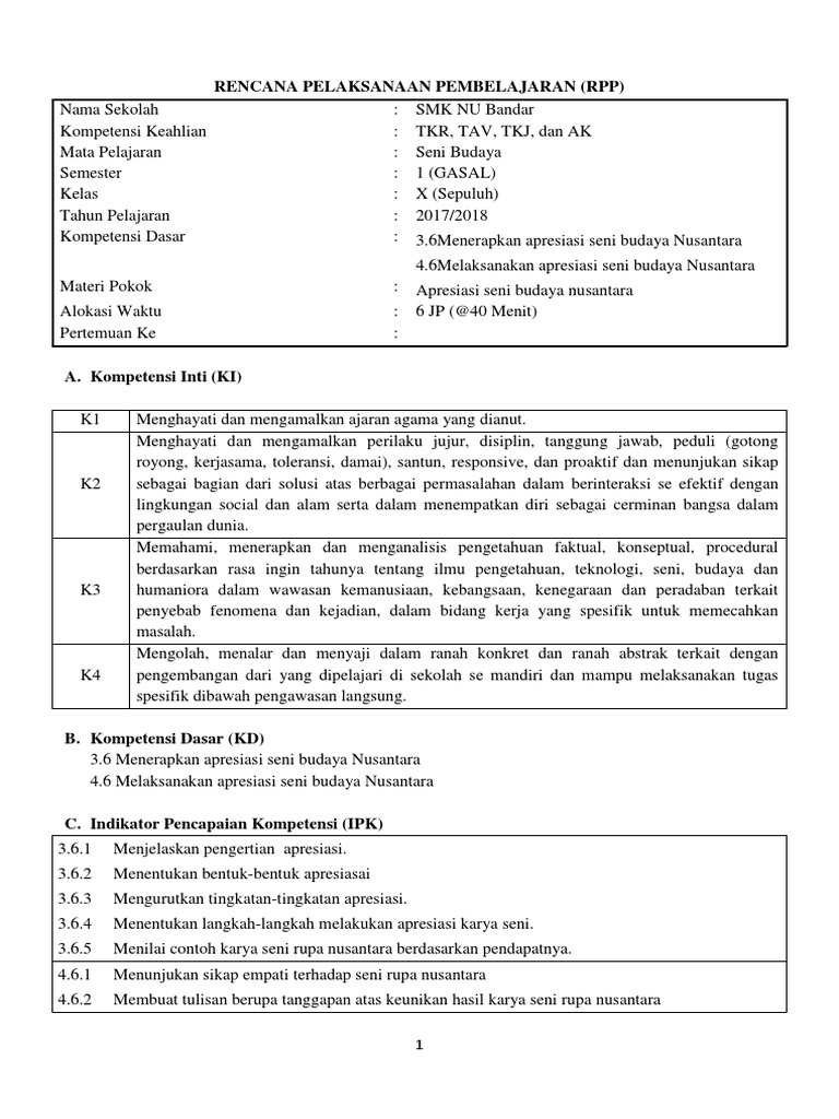 Rpp 3 8 Menganalisis Karya Seni Budaya Nusantara