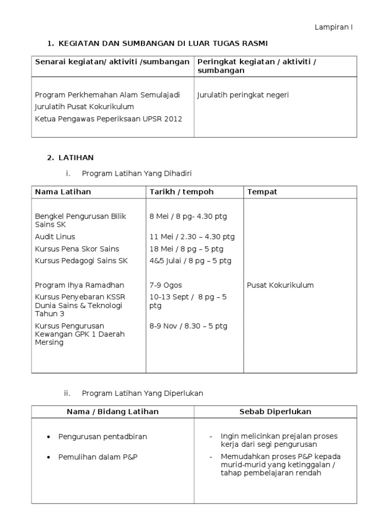 Kegiatan Dan Sumbangan Di Luar Tugas Rasmi Download Doc