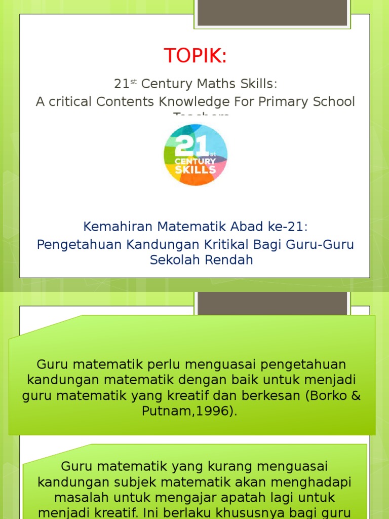 Topik 21 Century Maths Skills A Critical Contents Knowledge For Primary School Teachers