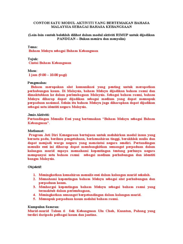 Contoh Satu Modul Aktiviti