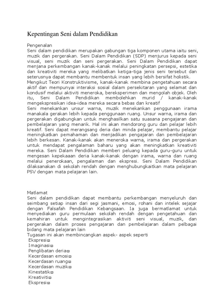 Kepentingan Seni Dalam Pendidikan Pdf Document