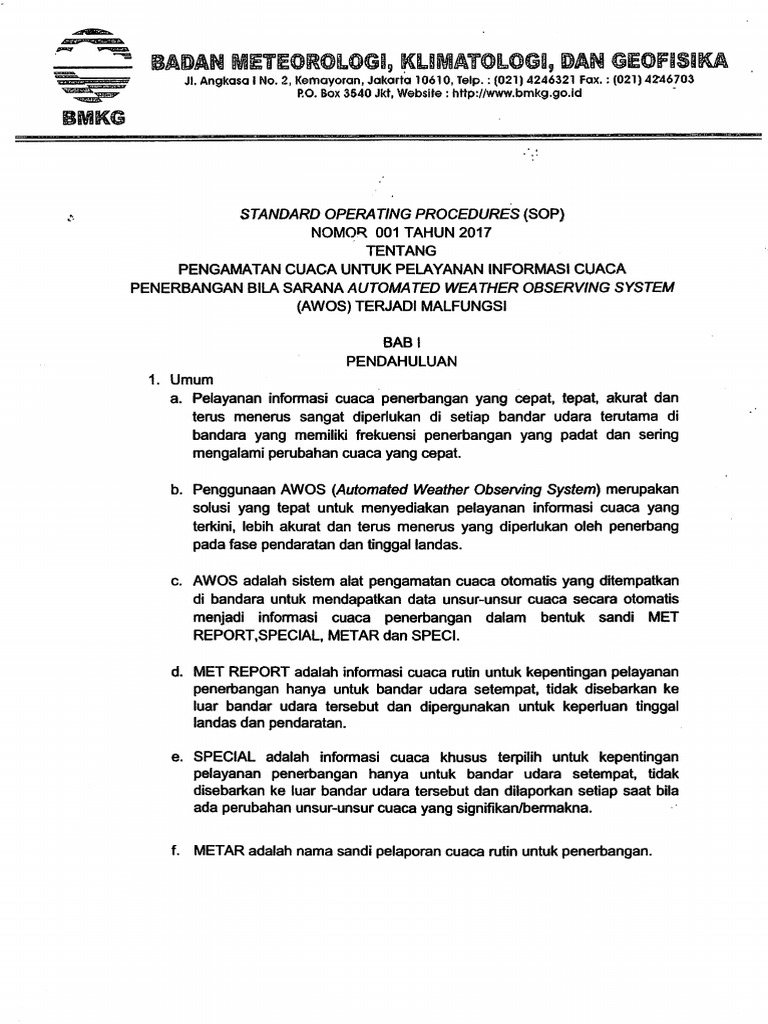 Sop Pengamatan Cuaca Untuk Pelayanan Informasi Cuaca Penerbangan Bila Sarana Awos Terjadi Malfungsi Pdf