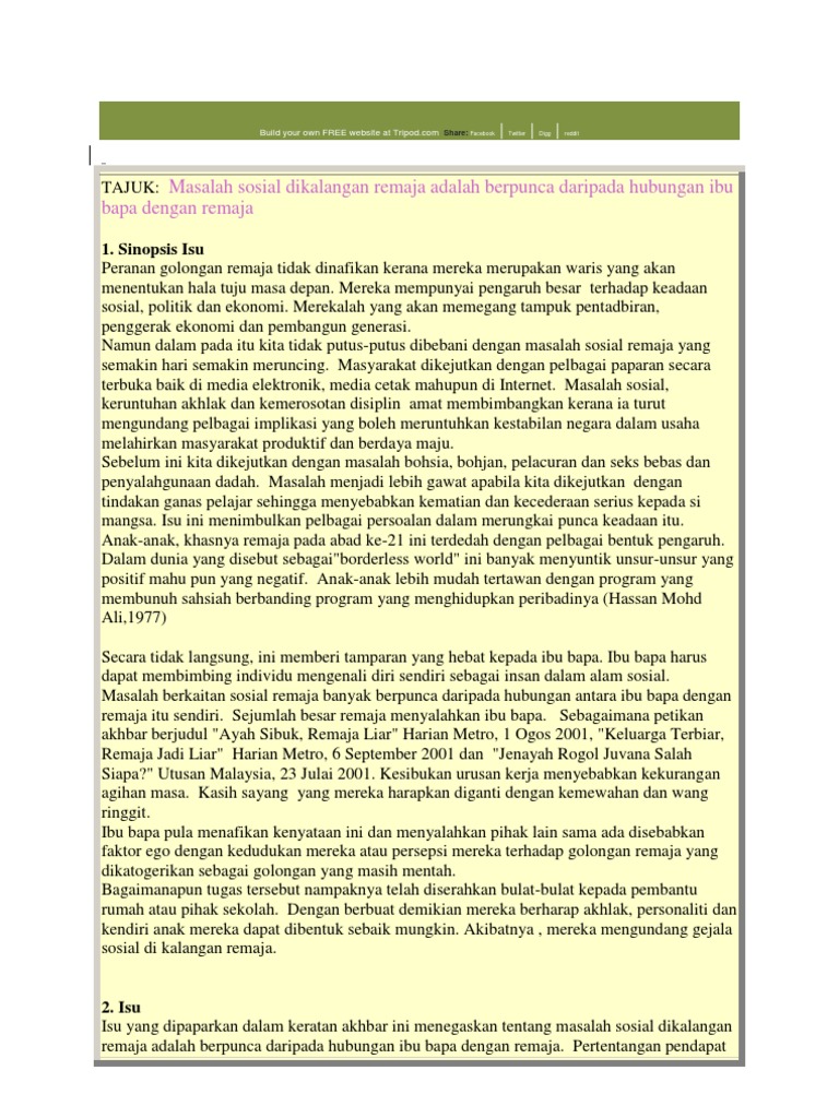 Masalah Sosial Dikalangan Remaja Adalah Berpunca Daripada Hubungan Ibu Bapa Dengan Remaja