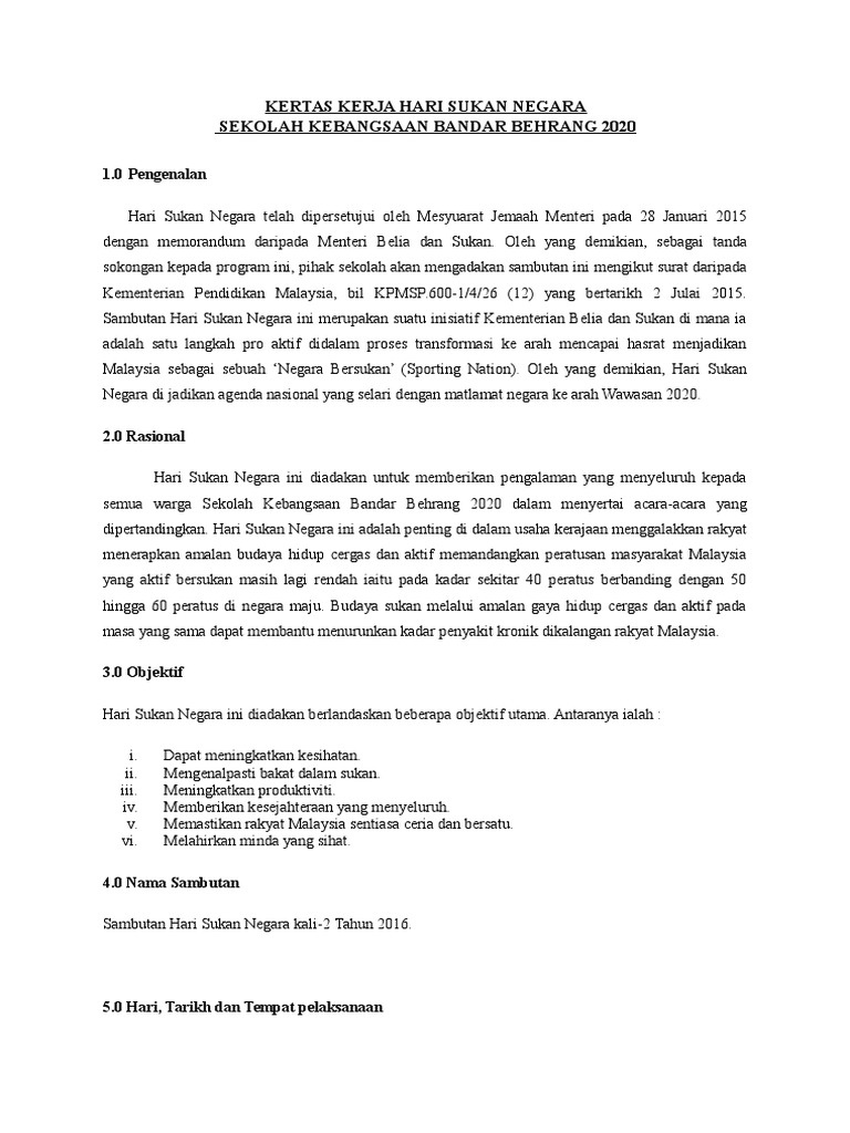 Kertas Kerja Hari Sukan Negara Sumber Pendidikan