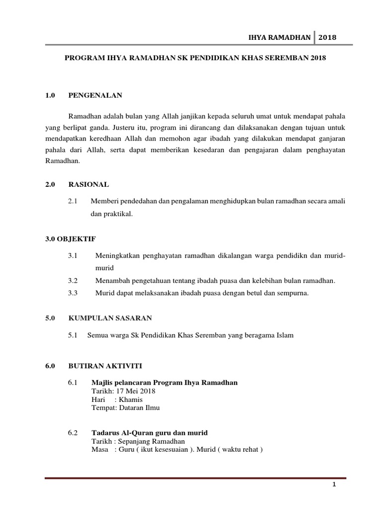 Doc Contoh Kertas Kerja Ihya Ramadhan Mar Nasir Academia Edu
