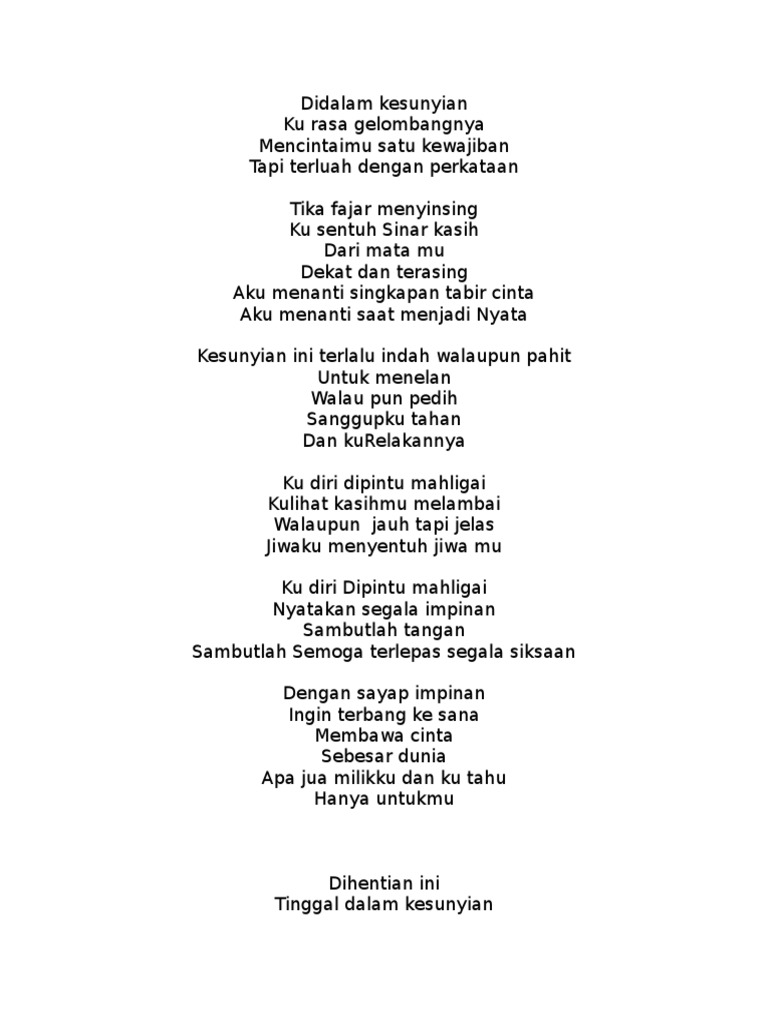 Chord Kunci Gitar Di Pintu Mahligai Iklim Lirik Lagu Kesunyian Ini Terlalu Indah Tribun Padang