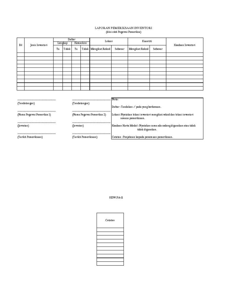 Kew Pa 11 Laporan Pemeriksaan Inventori