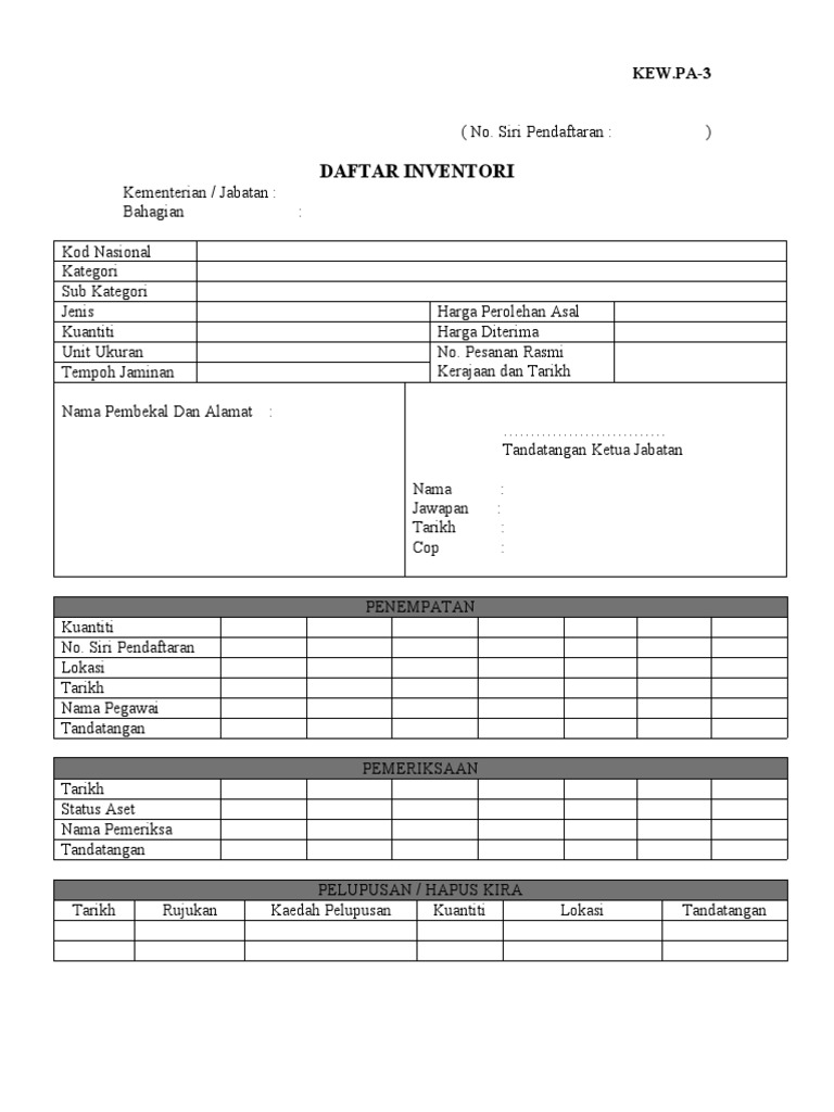 Kew Pa 3 Daftar Aset Alih Yang Bernilai Rendah