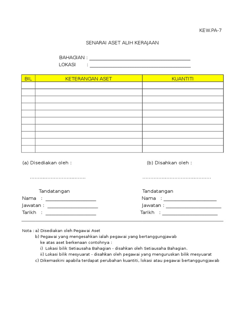 7 Kew Pa 7 Senarai Aset Di Lokasi Doc Pekeliling Perbendaharaan Malaysia Am 2 3 Lampiran E Kew Pa 7 Senarai Aset Alih Kerajaan Bahagian Lokasi Bil Course Hero