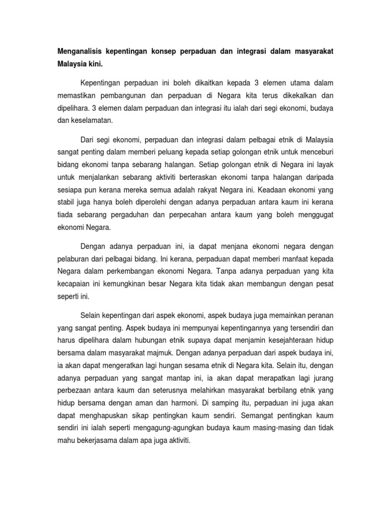 Menganalisis Kepentingan Konsep Perpaduan Dan Integrasi Dalam Masyarakat Malaysia Kini Docx