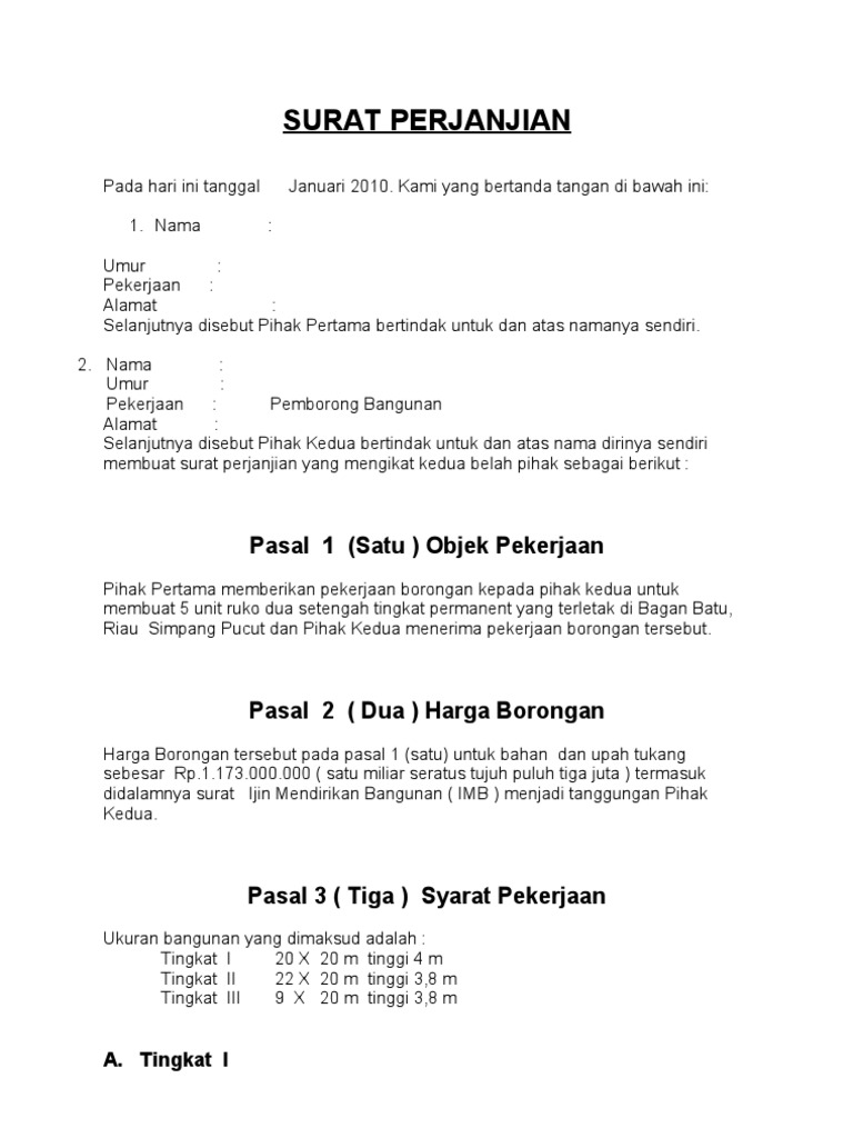 Doc Surat Perjanjian Pemborong Bangunan Ahmad Sarmidi Academia Edu
