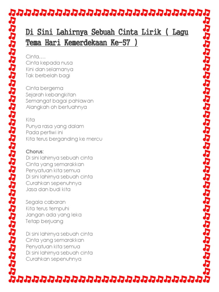 Lirik Lagu Di Sini Lahirnya Sebuah Cinta Doc