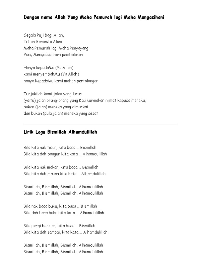 Lirik Lagu Maksud Al Fatihah Hasbi Rabbi