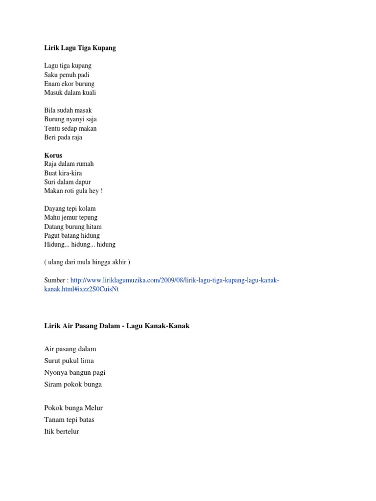 Lirik Asal Lagu Tiga Kupang