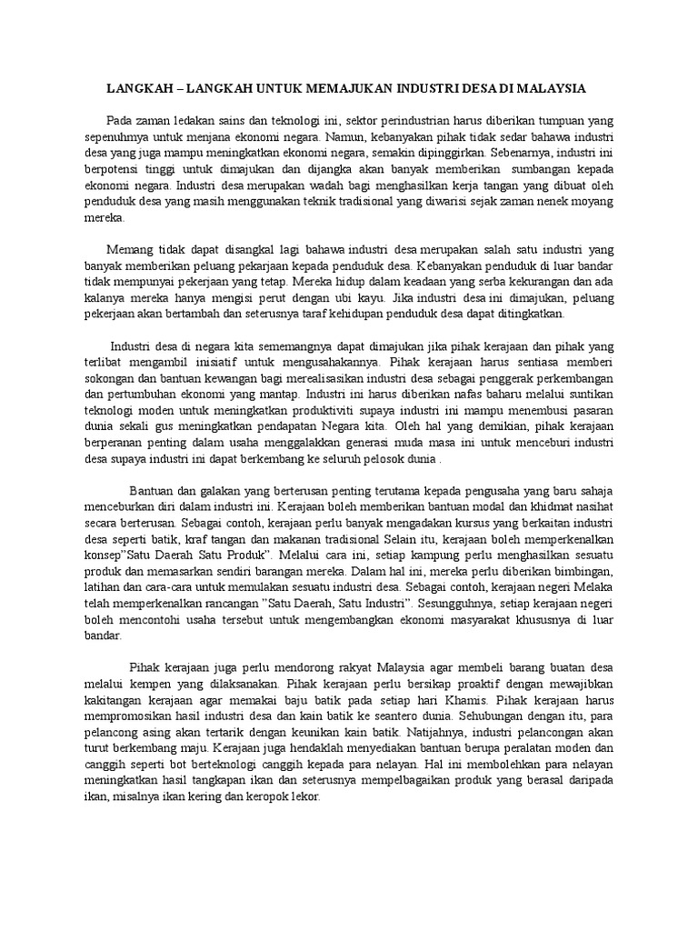 Contoh Jawapan Kbkk Langkah Malaysia Untuk Memajukan Ekonomi Negara Docx