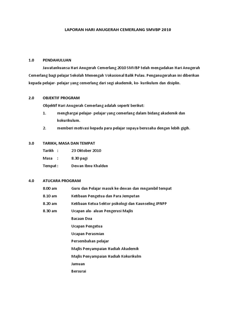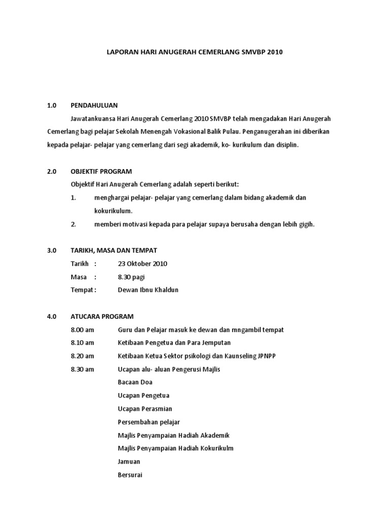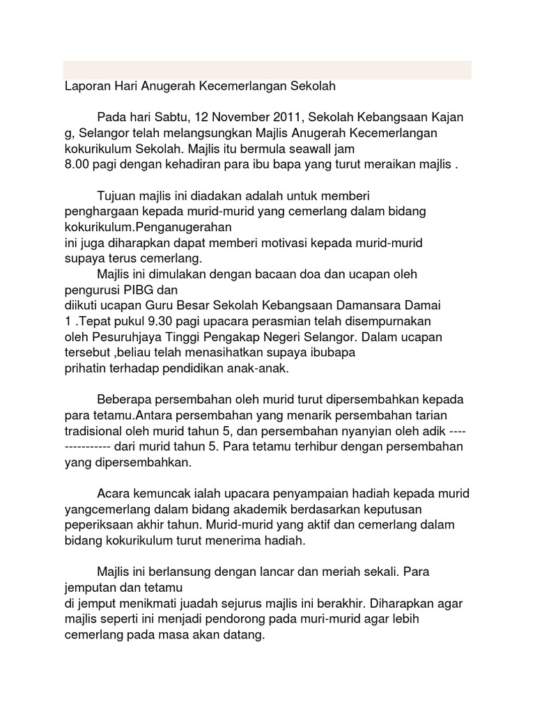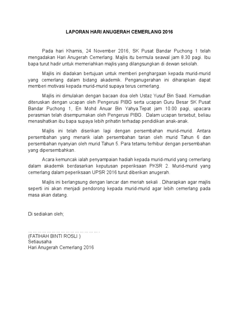 Contoh Karangan Laporan Majlis Anugerah Cemerlang Spm Surat Gg