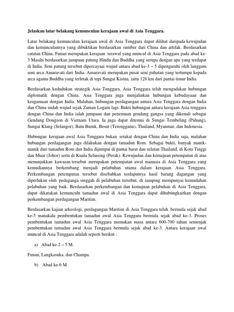Sejarah Asia Tenggara Docx Bab I Pendahuluan A Latar Belakang Dalam Historiografi Asia Tenggara Diterima Secara Luas Bahwa Sejarah Asia Tenggara Pada Course Hero