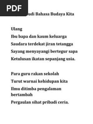 Lirik Lagu Budi Bahasa Budaya Kit1 Pdf Document