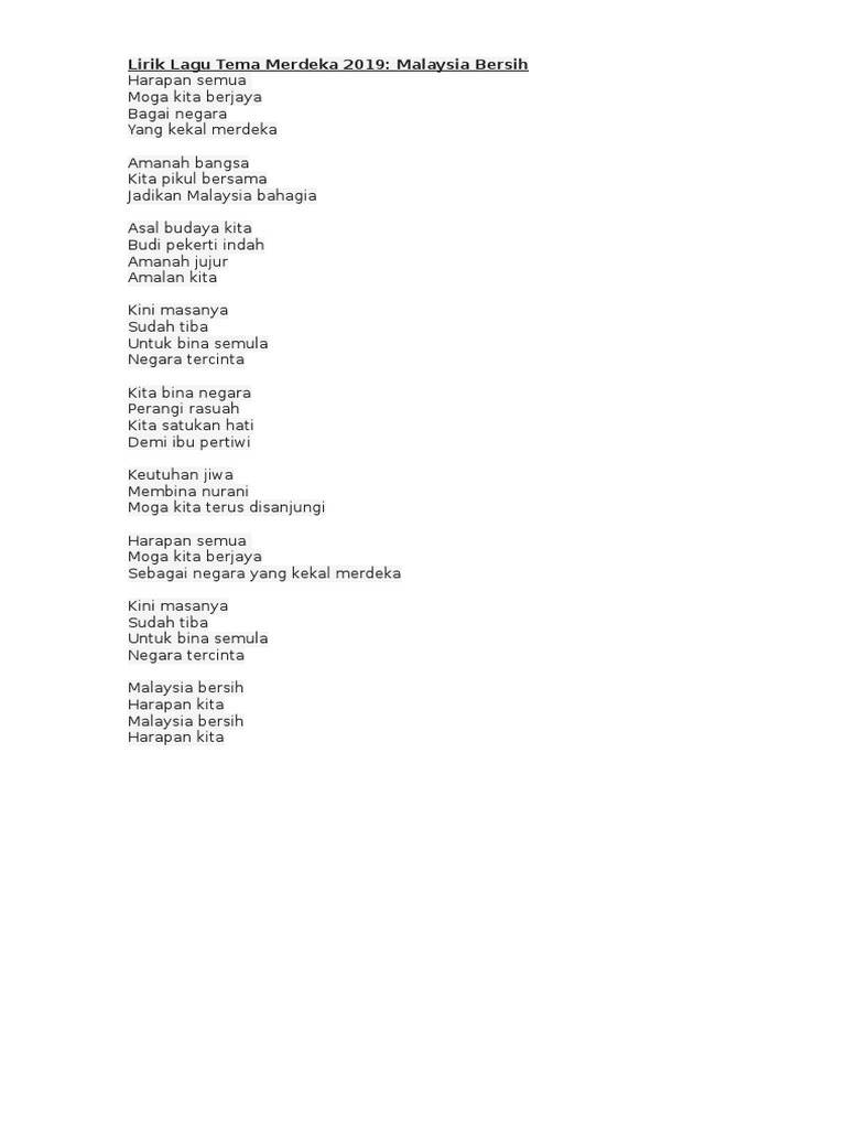 Lirik Lagu Tema Merdeka 2019 Docx