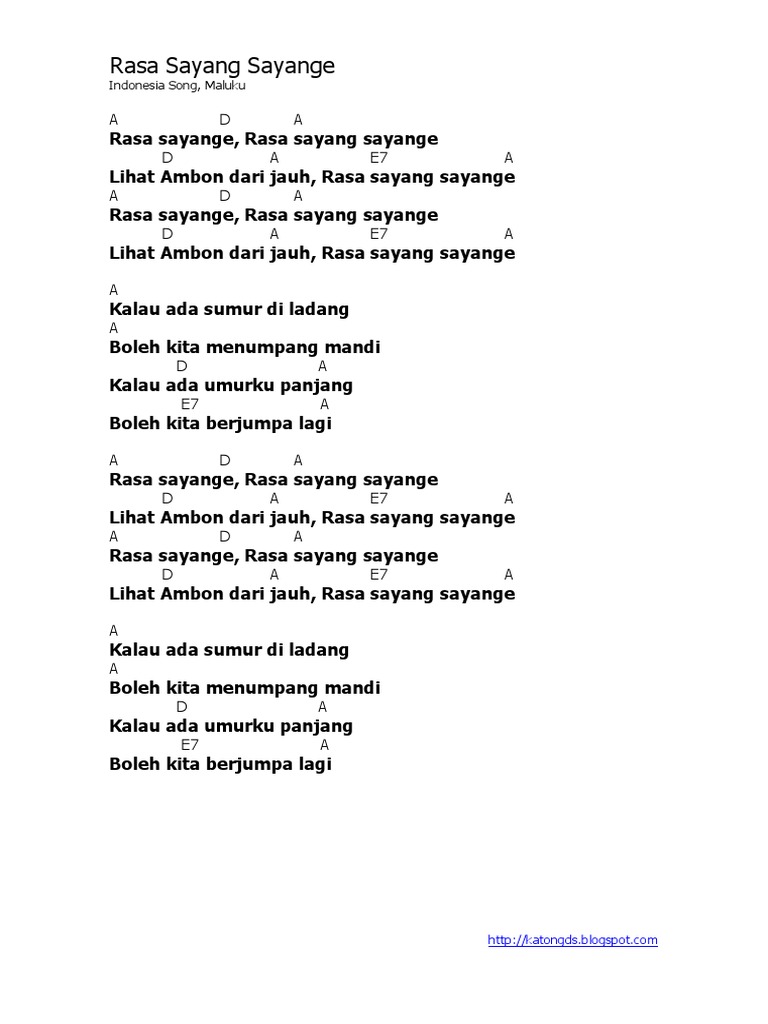 Lyric Chord Rasa Sayang Sayange Indonesia Song