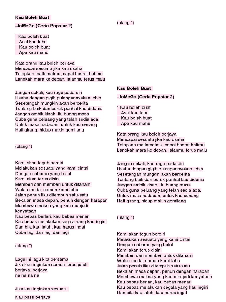 Music video lirik hatiku masih berdebar tiap kali bertemu aku cuba bersuara walaupun lidahku kelu perasaanku padamu seluas lautan biru beriku satu peluang untuk mengenalimu aku suka cara jalanan. Keindahan wajahmu sama seperti hatimu suaramu yang lembut dan juga merdu. Ada ke yang mencari lirik rap mk dalam peluang kedua ni. Lirik satu peluang download lagu dan chord gitar tidak disediakan di blog ini.