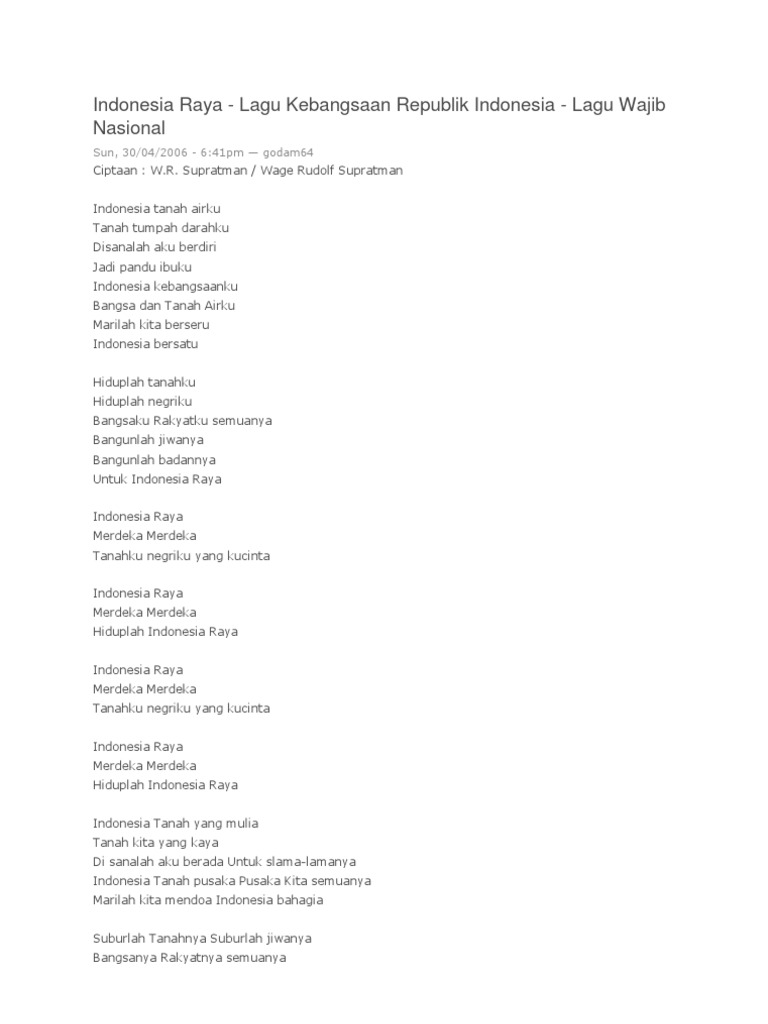 Lagu Indonesia Raya 3 Stanza Semua Halaman Bobo