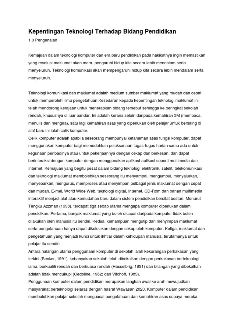 Kepentingan Teknologi Terhadap Bidang Pendidikan
