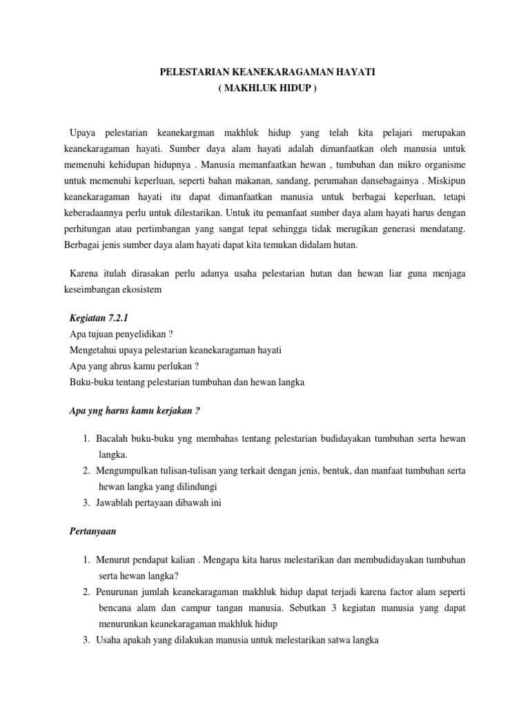 Ipa Kls 7 Bab 10 Pelestarian Ekosistem