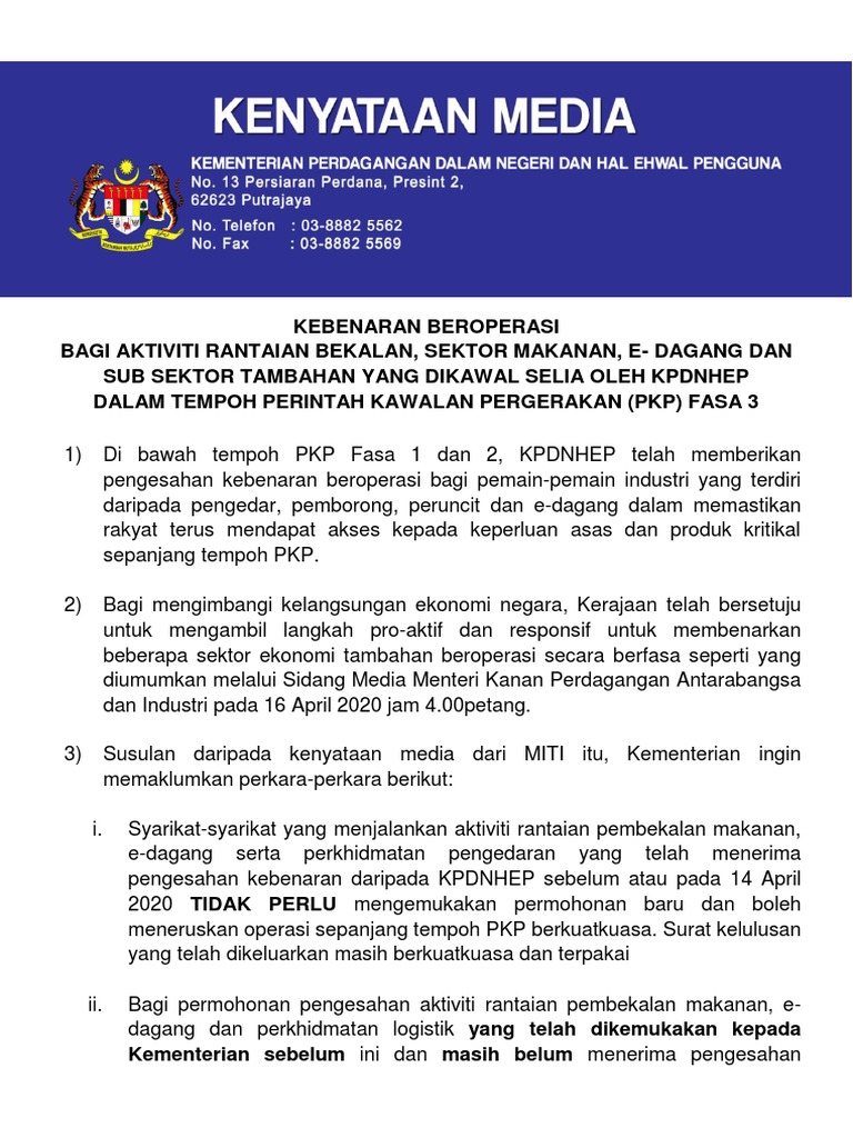 Sidang Media Menteri Kanan Perdagangan Antarabangsa Dan Industri Miti Azmin Ali 4 00pm 16 April 2020 Best Fbkl