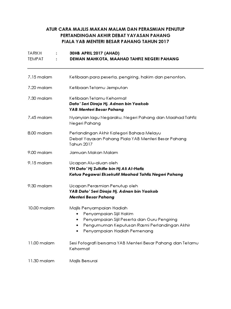 Atur Cara Majlis Makan Malam Dan Perasmian Penutup Dyp