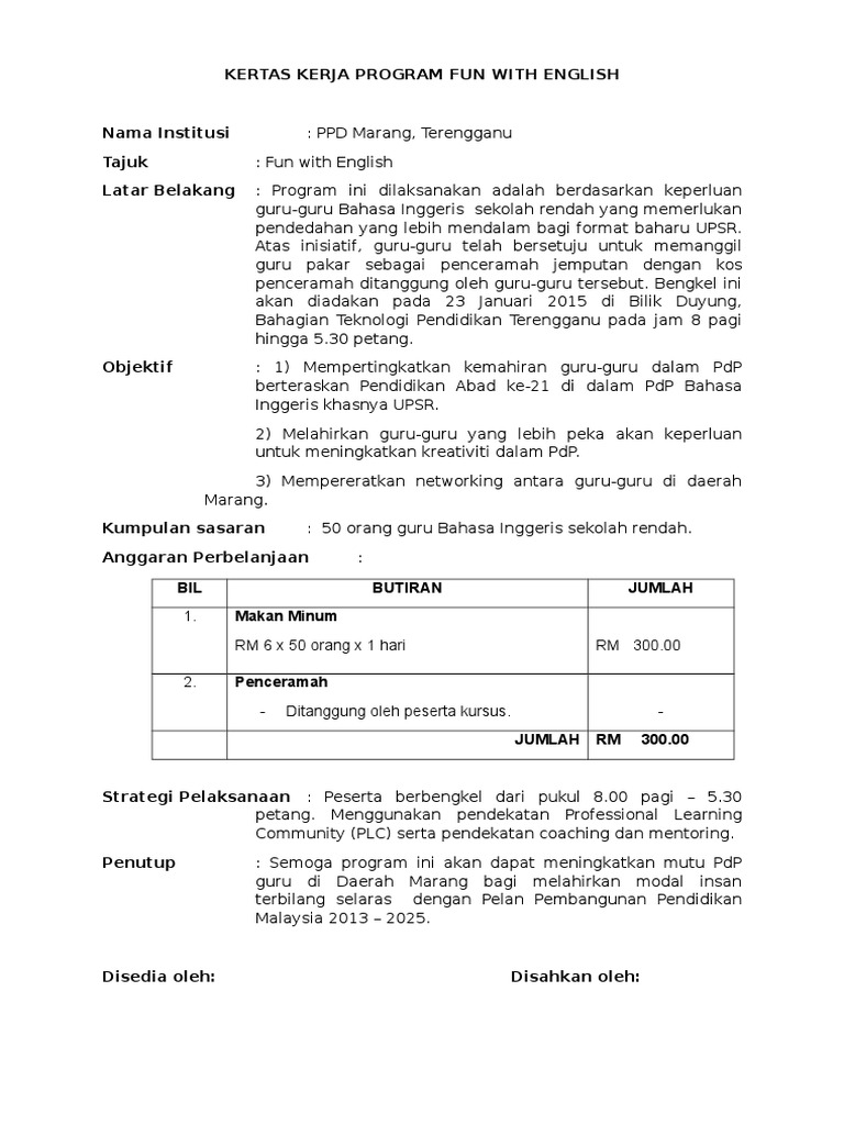 Kertas Kerja Program Fun With English