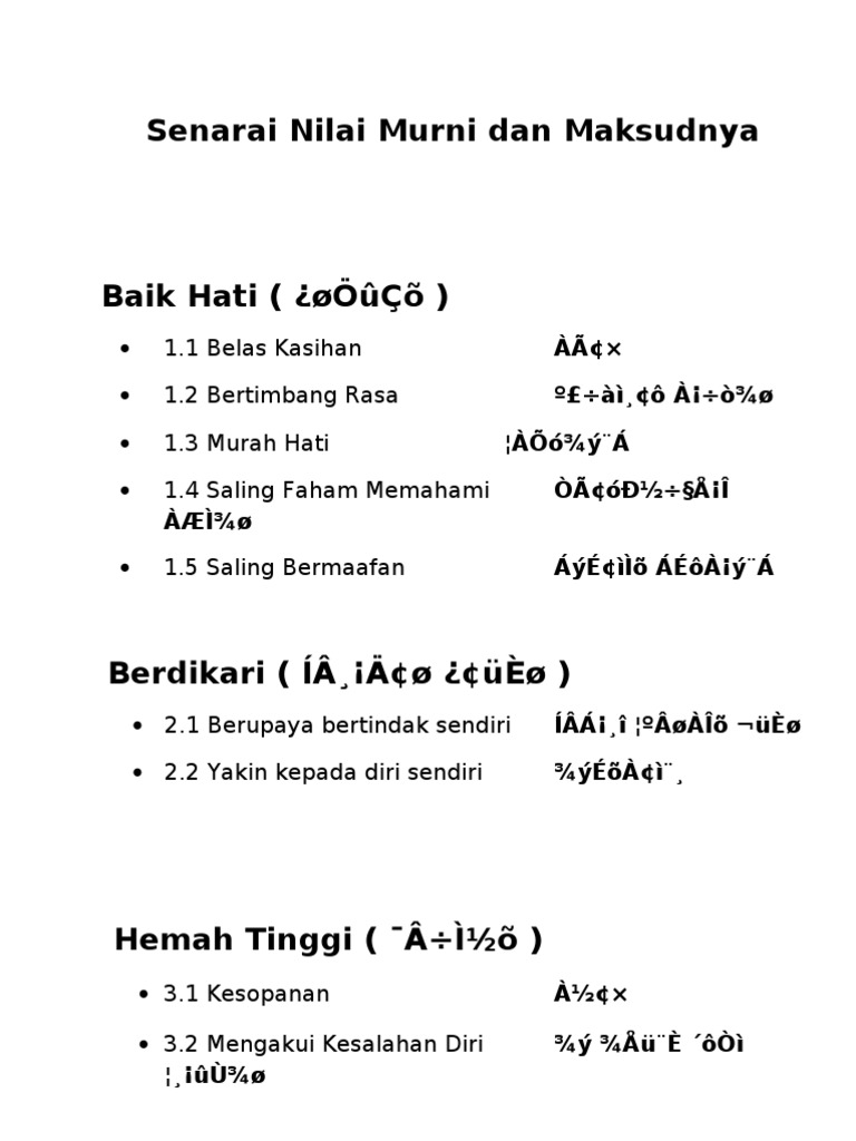 Senarai Nilai Murni Dan Maksudnya Bahasa Melayu