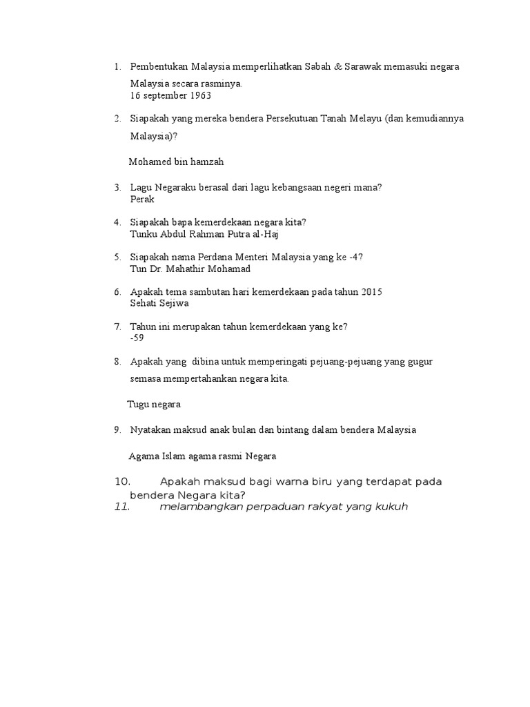 Soalan Kuiz Kemerdekaan Tahun 4 Docx