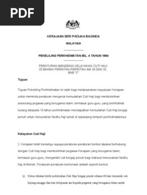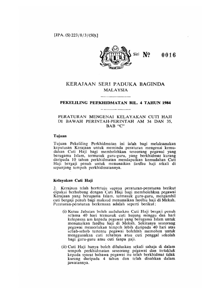 Pp4 1984 Peraturan Mengenai Kelayakan Cuti Haji Di Bawah Perintah Perintah Am 34 Dan 35 Bab C